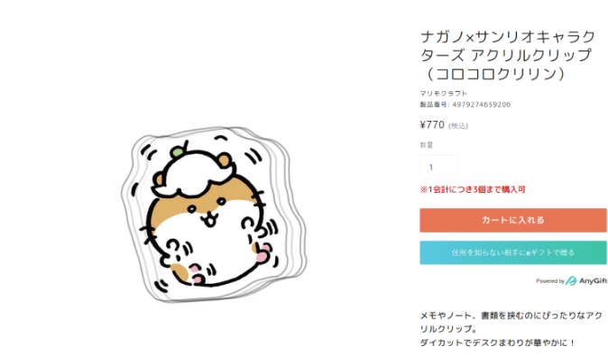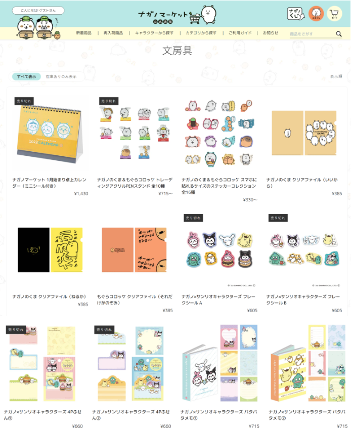 다이어리를 꾸밀 때나, 핸드폰 노트북을 꾸밀 때 쓰이는 농담곰 스티커는 나가노 마켓을 이용해 직구해 보세요. 귀여운 캐릭터 스티커뿐만 아니라, 캘린더, 문구류까지 다양하게 준비되어 있답니다. 특히 산리오와 콜라보 중인 아크릴 클립 아트와 필기류 등은 뜨거운 인기로 빠르게 솔드아웃 되었어요. 산리오 콜라보 아크릴 클립은 1계정단 3개씩 구매제한도 되어 있는 만큼 베스트 직구 아이템입니다.