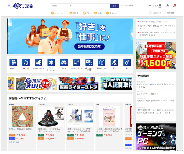 주식회사 A-Too(에츠)에서 운영하는 통신판매 동인샵으로 본점은 시즈오카현 시즈오카시에 있다고해요. 게임, 중고 도서, DVD, CD, 피규어 등 서브컬처 계열 물건 전반을 다루고 있고, 온라인 공홈을 통해서, 다양한 상품들과 커브컬쳐 아이템 및 중고 피규어들을 직구 하실 수 있습니다.