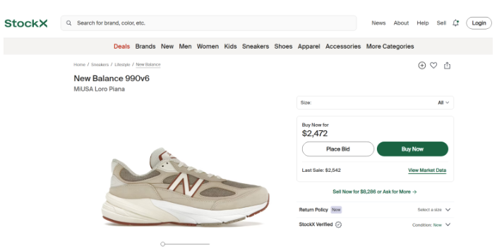 뉴발란스 X 로로피아나(Loro Piana)의 콜라보레이션 스니커즈는 2024년 9월 5일에 출시되었어요. 이 제품은 뉴발란스의 990v6 모델을 기반으로 하며, 전 세계 1,000족 한정으로 제작되어 , 출시 직후부터 큰 인기를 끌며, 한정판 특성상 리셀 시장에서 높은 가격에 거래되고 있어요. 패션 아이콘인 김나영 씨가 착용하여 더욱 주목받은 뉴발란스 콜라보 스니커즈에요 .