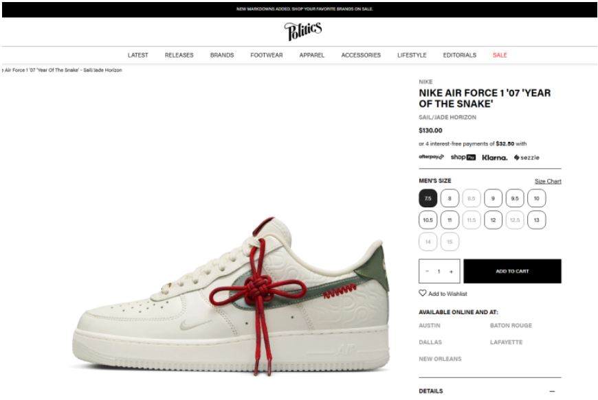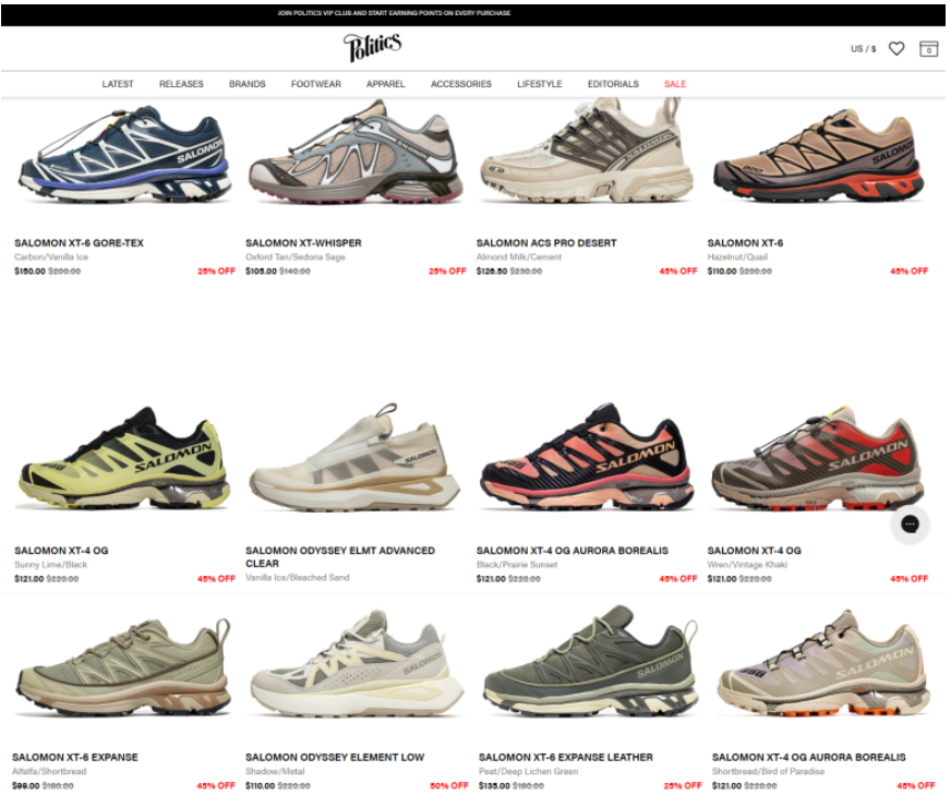 매번 똑같은 스니커즈 사이트만 둘러보고 계셨나요? 국내에서는 쉽게 만나기 어려운 한정판, 콜라보 제품이 쏟아지는 숨겨진 스니커즈 성지, 스니커즈를 사랑하는 이들에게 숨은 보석 같은 사이트, Sneaker Politics(스니커 폴리틱스) 를 소개합니다. 나이키, 조던, 뉴발란스 등 인기 브랜드는 물론, 국내 미출시 모델이나 미국 한정 에디션을 발 빠르게 만나볼 수 있는, 스니커즈 마니아라면 한 번쯤 꼭 들러봐야 할 핫한 미국 부티크예요. 특별한 한 켤레를 찾는 여정. Sneaker Politics로 시작해 보세요!