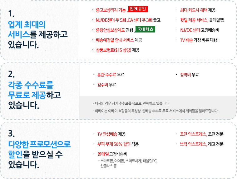 ※ 델라웨어 센터의 경우, 배송신청서 건별로 최소 수수료 $1가 부과됩니다. [자세히보기]